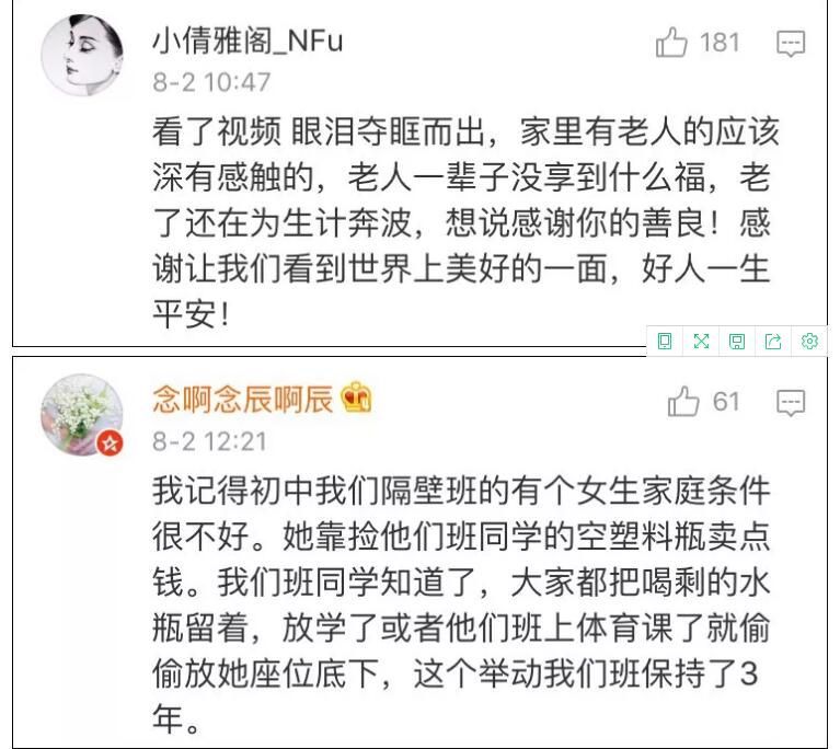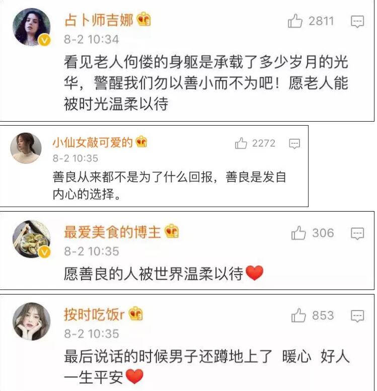 这暖心的一幕感动了许多网友“善良是发自内心的选择”