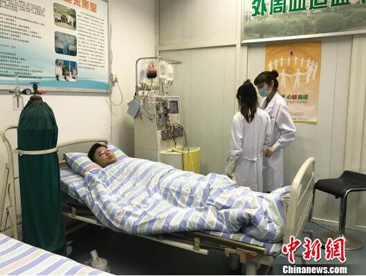 原标题:重庆小伙捐献造血干细胞救助白血病患者 图为吴兵(化名)正在捐献造血干细胞。钟旖摄 中新网重庆