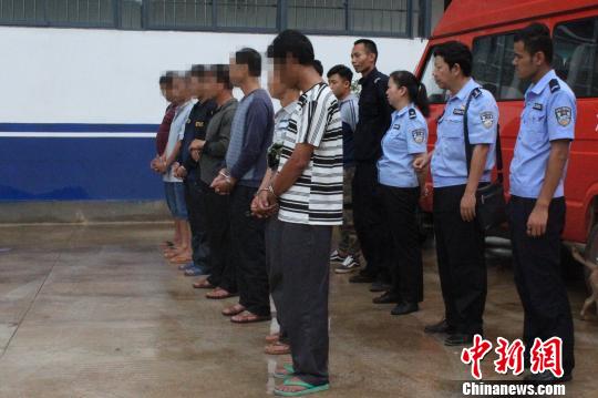 图为非法狩猎团伙7名犯罪嫌疑人被刑事拘留。西双版纳州森林公安局供图
