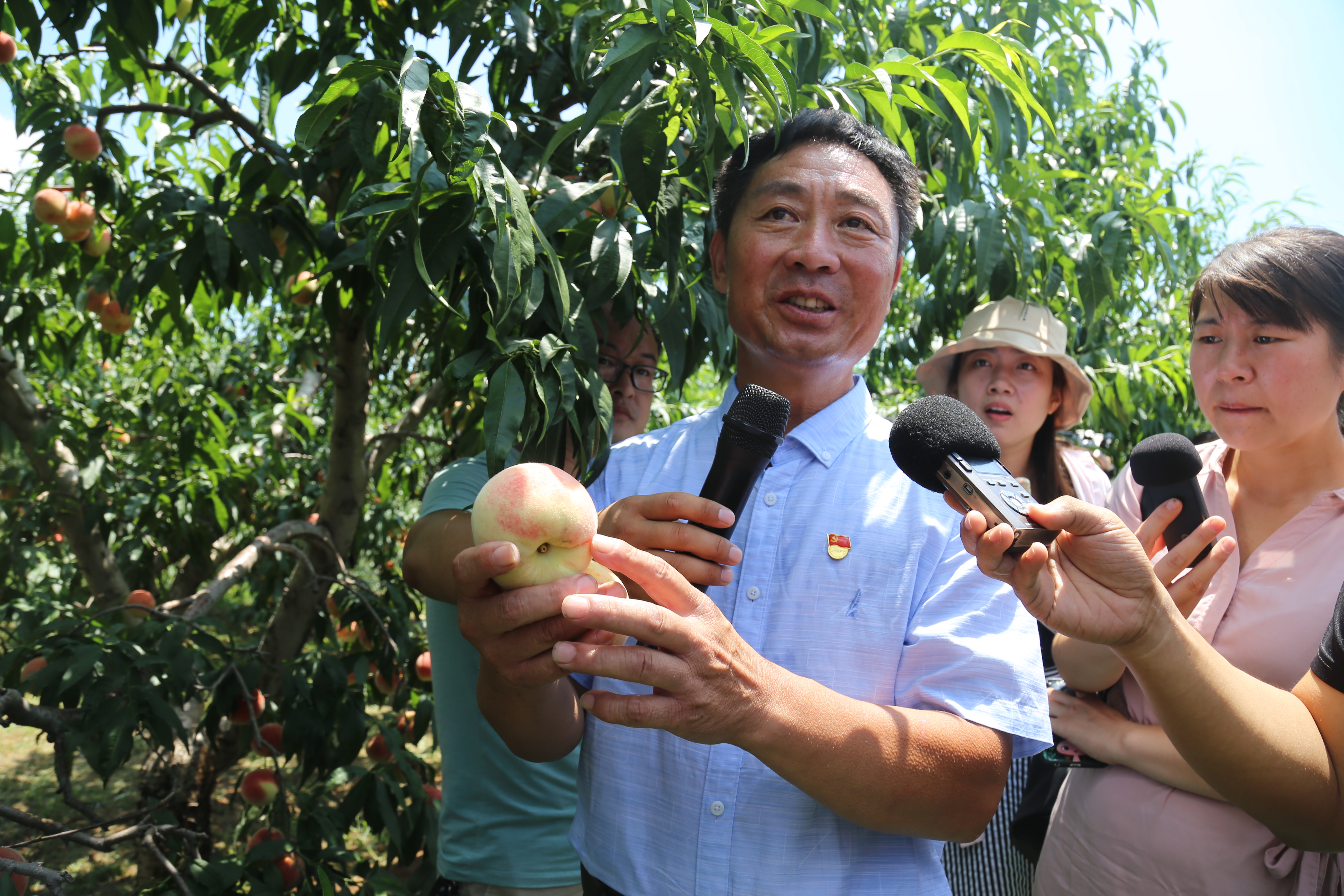 8月3日上午,“朱彦夫家乡的桃子熟了”——媒体在行动大型采访活动在沂源县西里镇举行。来自中央、省市级的媒体采访团抵达朱彦夫家乡西里镇张家泉村,开展党性教育,推介蜜桃小镇品牌。