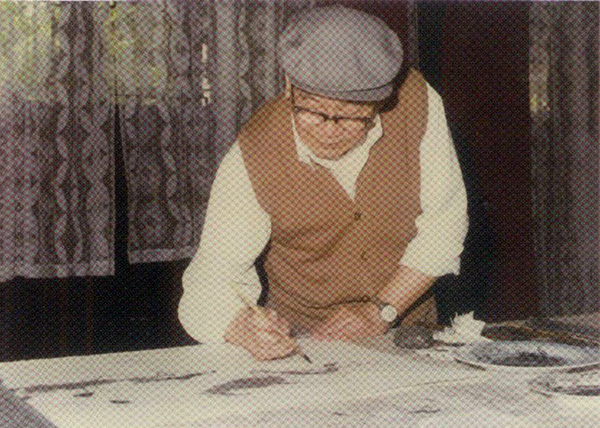 在绘画创作期间,父亲白天要完成《新民晚报》连载小说的各篇幅插图,只能坚持下午与晚上抓紧作画,因作品尺幅大,住家地方又狭小,只能借住外单位大房间搁起板来作画。表现手法又是中国画中最吃功力的工笔重彩,确实花费了他俩大量的心血和精力,待作品完成后父亲瘦了好多斤,还因长时间趴在搁板上作画,得不到正常休息,还患了肝肿大。