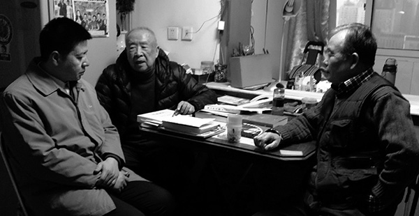 2015年冬,笔者(右)在王强华家中研究真理标准讨论纪实书稿