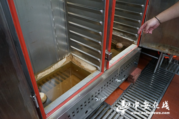 在反复要求开门都被拒绝的情况下,家长们选择了报警。在民警到达现场后,老师这才拿出门卡,刷卡打开大门。记者在现场看到,后厨的监控探头被胶布粘住,锅具底部有厚厚的锈斑,蒸包子的机器底部水里掺着泥土一样的物质,比起卫生情况,更让家长们震惊的是,冰柜里竟然有过期食品。