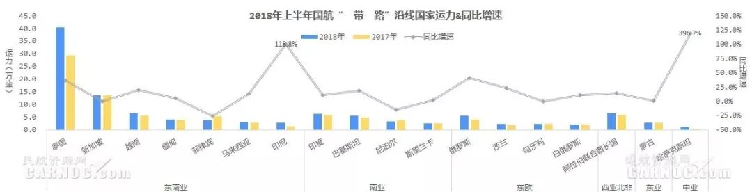 相比2017年上半年,国航新开8条直飞“一带一路”沿线国家航线,其中新开直飞东南亚地区航线6条,南亚、东欧地区分别新开1条直飞航线。