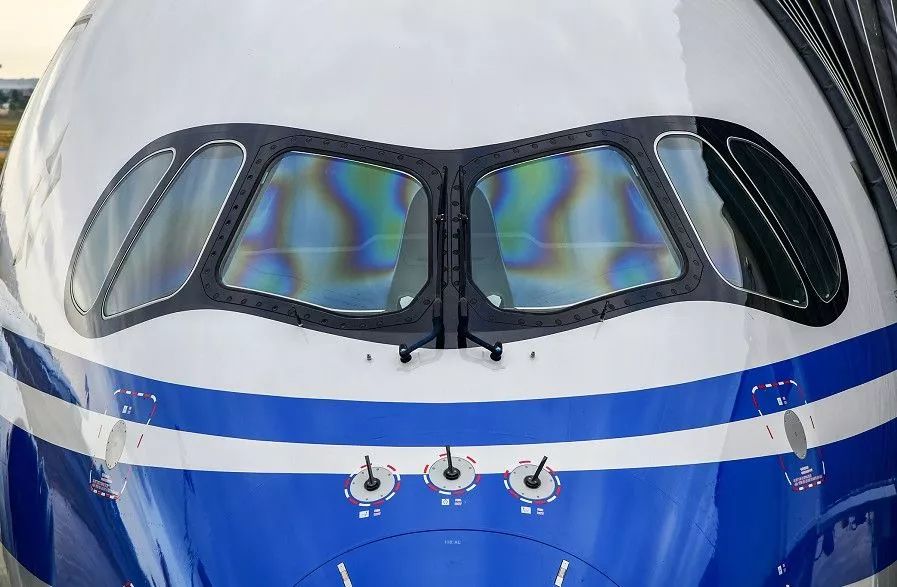 “墨镜”指的是A350驾驶舱舷窗外的一圈黑色边框,仿似电影里超级英雄为了保持神秘身份所戴的黑眼罩。那这副“墨镜”到底有什么实际作用呢?据空客的官方说法,因为A350是一款全新的机型,大量的采用了创新的科技和材料,外观的设计不单美观,还非常符合空气动力学的原理,特别是机头的造型和以往的空客机型有了很大的区别。空客说,这副“墨镜”就是为了颜值!简单的说,就是“帅”。