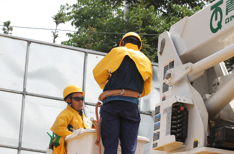 13日,13名带电作业人员一早赶到作业现场,本次带电作业工作负责人张正良像往常一样,召开班前会、宣读工作票、检查绝缘工器具、分配作业任务,各项准备工作有条不紊开展。在一切准备就绪后,作业人员登上绝缘斗臂车升空至作业点附近,两部绝缘斗臂车内的作业人员密切配合,严格按照标准化作业流程对线路进行包裹、遮蔽等操作。此时,地面温度已超过40度。穿上绝缘服、戴上绝缘手套的作业人员,在高空烈日下所承受的温度要比实际气温高出七八度,他们的工装早已被汗水浸透。地面上的相关负责人及监护人员,头顶烈日抬头仰望,时刻关注着斗臂车上作业人员的操作步骤,不断提醒作业人员注意操作方式和安全。在高空与地面人员默契配合下,各项工作紧密有序进行。经过6个小时的连续作业,顺利完成了本次工作任务,保障了沿线客户的正常用电,确保了朱家洼社区旧村改造配套工程顺利进行。(郑路)
