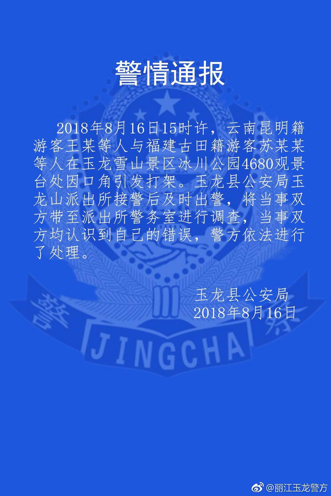 原标题:视频|云南警方:两名游客在4680米玉龙雪山之巅打架斗殴春城晚报8月17日消息,8月16日下