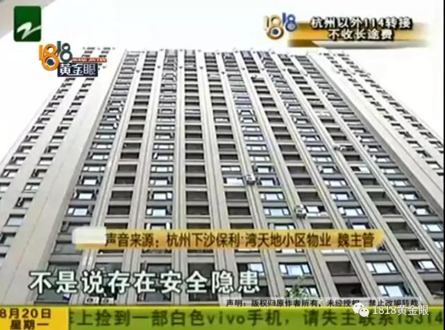 杭州下沙保利·湾天地 小区物业 工作人员 魏主管:“我们在维保,目前的话,临时的话,没有停机滑梯的现象,这个电梯,说白了,我也不是很专业,他们是说,不是说存在安全隐患,关了人,肯定是速度有些慢。”