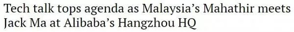 更值得一提的是,此次访华马哈蒂尔拜访了阿里巴巴、吉利等公司,与马云等企业家大谈技术。回到吉隆坡之后,马哈蒂尔更是说了两句话,一是要借助马云的电子商务把马来西亚的糕点卖到世界每一个角落,二是要派人到中国跟马云学习网络技术。
