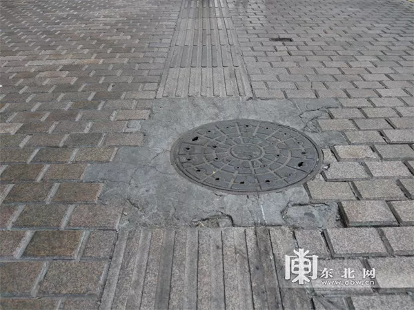 在哈市秋林商圈附近的人行道上,不过200米的距离,就出现了多处盲道破损,或盲道上出现马葫芦等现象。在红军街靠近邮政街方向,地面上的盲道砖早已变得模糊不清,“平坦”的盲道砖又如何为盲人指引方向。