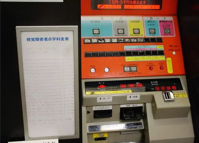 残疾人自动售票机器,配置盲文