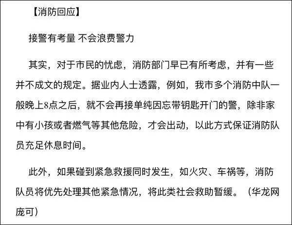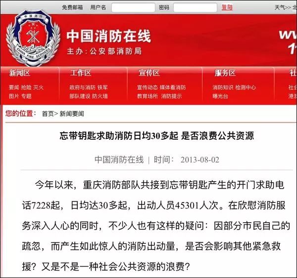 早在2013年,公安部消防局主办的官方网站“中国消防在线”就曾经刊登过一篇关于“忘带钥匙向消防求助是否属于浪费公共资源”的文章。