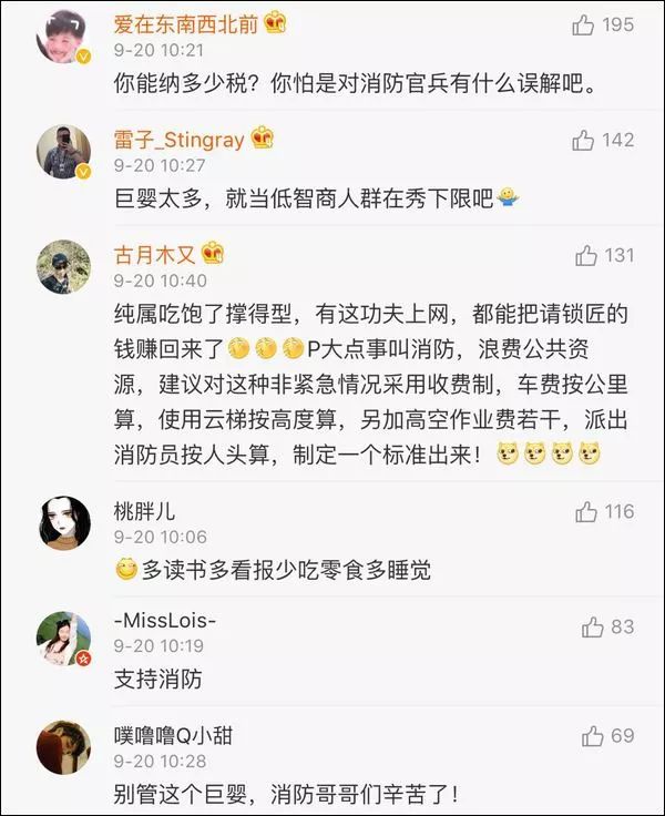 昨天(19日),一条网民怒斥消防员的微博火了。