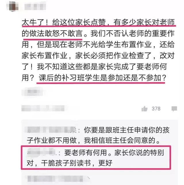 这家长太牛了,虽然老师也很辛苦了,但是现在小学生作业不仅多,还要求家长检查、批改,平常老师要求参加课后补习班,也不敢说不参加,孩子苦家长也苦啊。