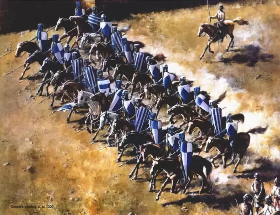 正在进行集体冲锋训练的十字军骑士