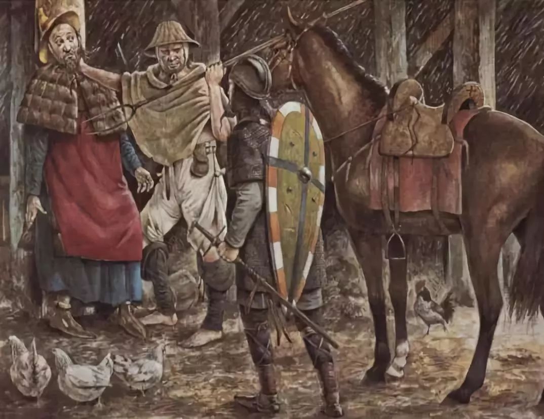 正在审问盗贼的十字军骑士