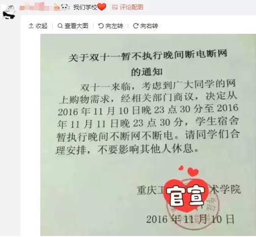 原标题:“双11不要断网啦!”大学生一封请求信火了,学校这样回应