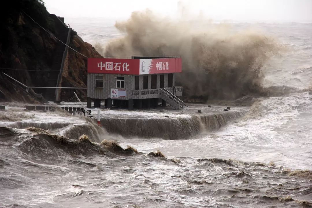 8月5日消息,台州温岭石塘镇金沙滩,浪打几米高,直漫堤坝。台风肆虐的天气被海浪淹没,对于这座加油站来说已经不是新鲜事了。海边的五岙加油站专门给渔船加油,每当大潮汐或东海洋面来台风,站台就都会被潮水淹没,自2004年以来,已屹立潮头14年,每年至少被淹十几次,却坚持营业,堪称“油坚强”。