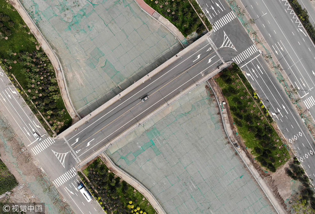 据山西新闻网报道,2018年6月29日,山西省太原市,远看风峪河河道内“碧波荡漾”,近看原来是裸露黄土被绿色防尘网所覆盖。供图者:邓邓/视觉中国
