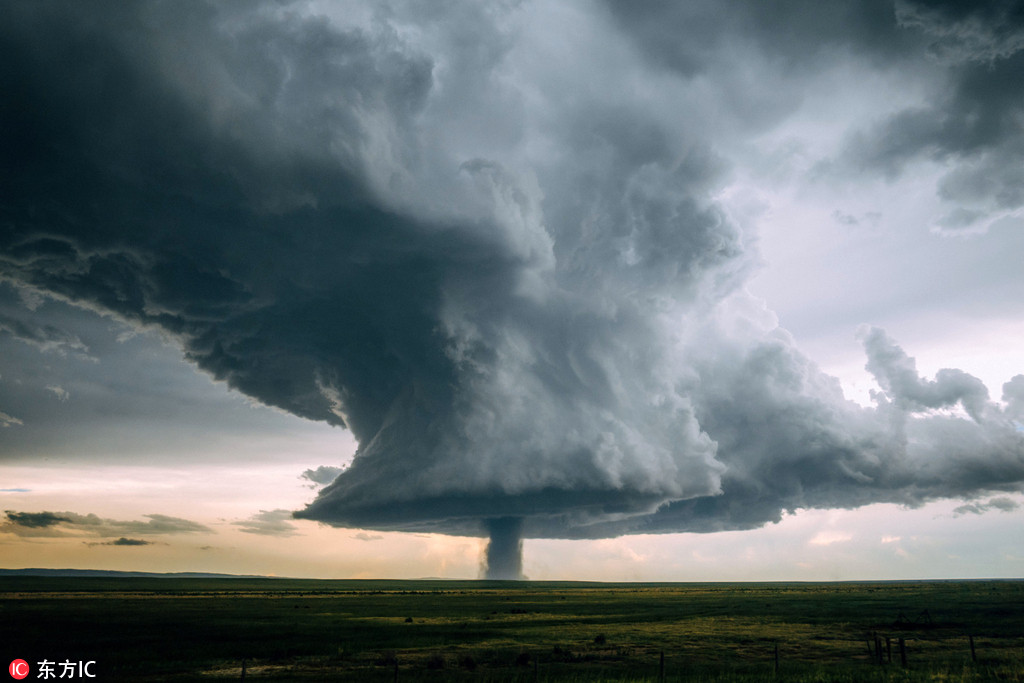 2018年6月13日报道,乍看这组图你是不是以为是核爆现场,但实际上,这是发生在美国怀俄明州的一场超强EF3龙卷风。供图:东方IC