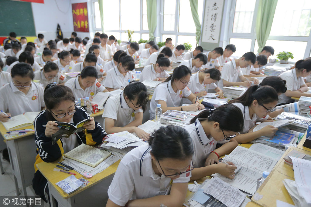 2018年6月7日,河北衡水二中的高三考生在走入高考考场前,一如往常一样在跑操、宣誓、学习,淡定的迎接即将到来的高考。供图:闫楠/视觉中国