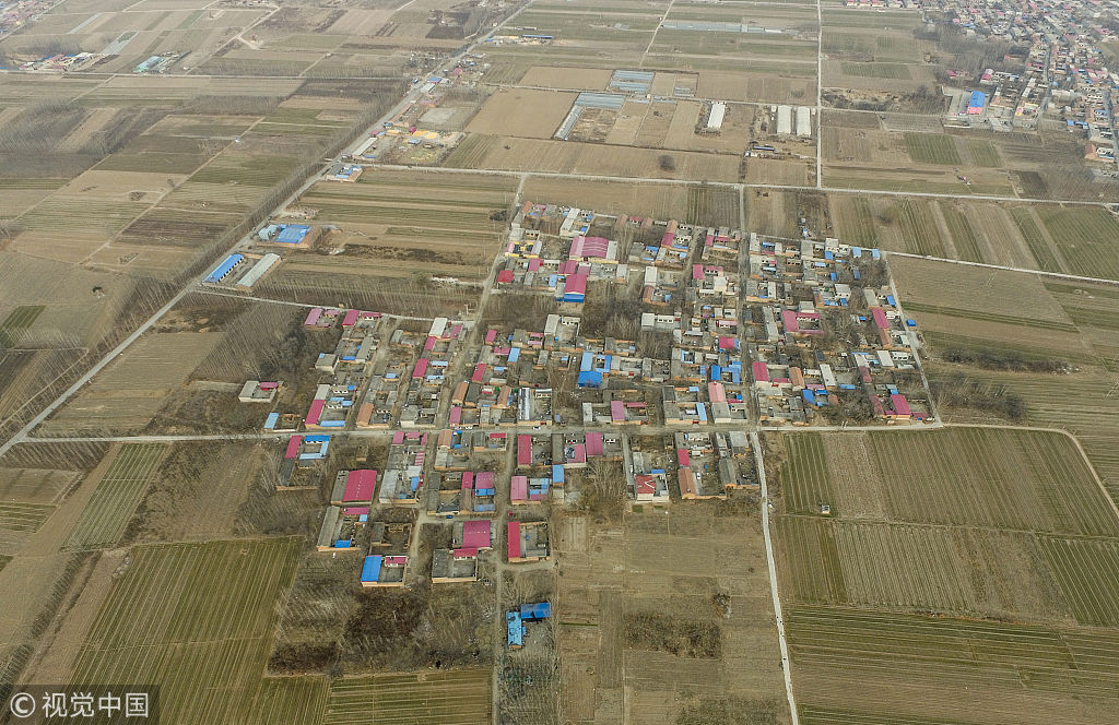 2018年3月21日,雄安,航拍位于雄县城区东北部,昝岗镇佐各庄村和关李马浒村西侧,221乡道南侧。在规划中这个地方以后将会建成雄安的高铁站。供图:关悦/视觉中国