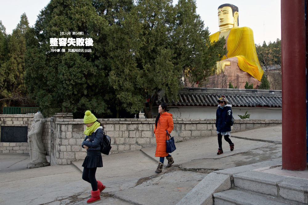 2014年12月5日,整容失败的宓圆圆、靳魏坤和陈怡丽(从左至右)在济南千佛山拜佛祈愿。异国一场失败的整容手术将女孩们的生活卷入绝望的漩涡,也让三个本不相干的人紧紧地联系在了一起。 冯中豪/摄(版权图片,严禁转载)