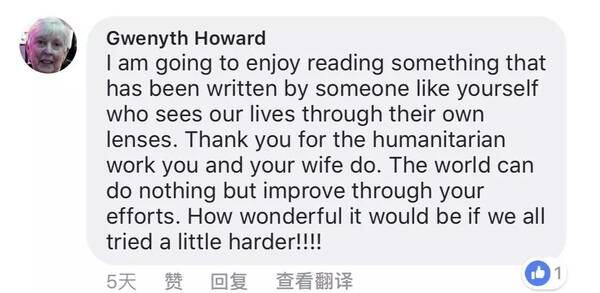 @Gwenyth Howard:感谢您和妻子为人道主义做出的努力,世界将通过你的努力有了改善,如果我们都能为此作出尝试,世界将变得无比美妙!