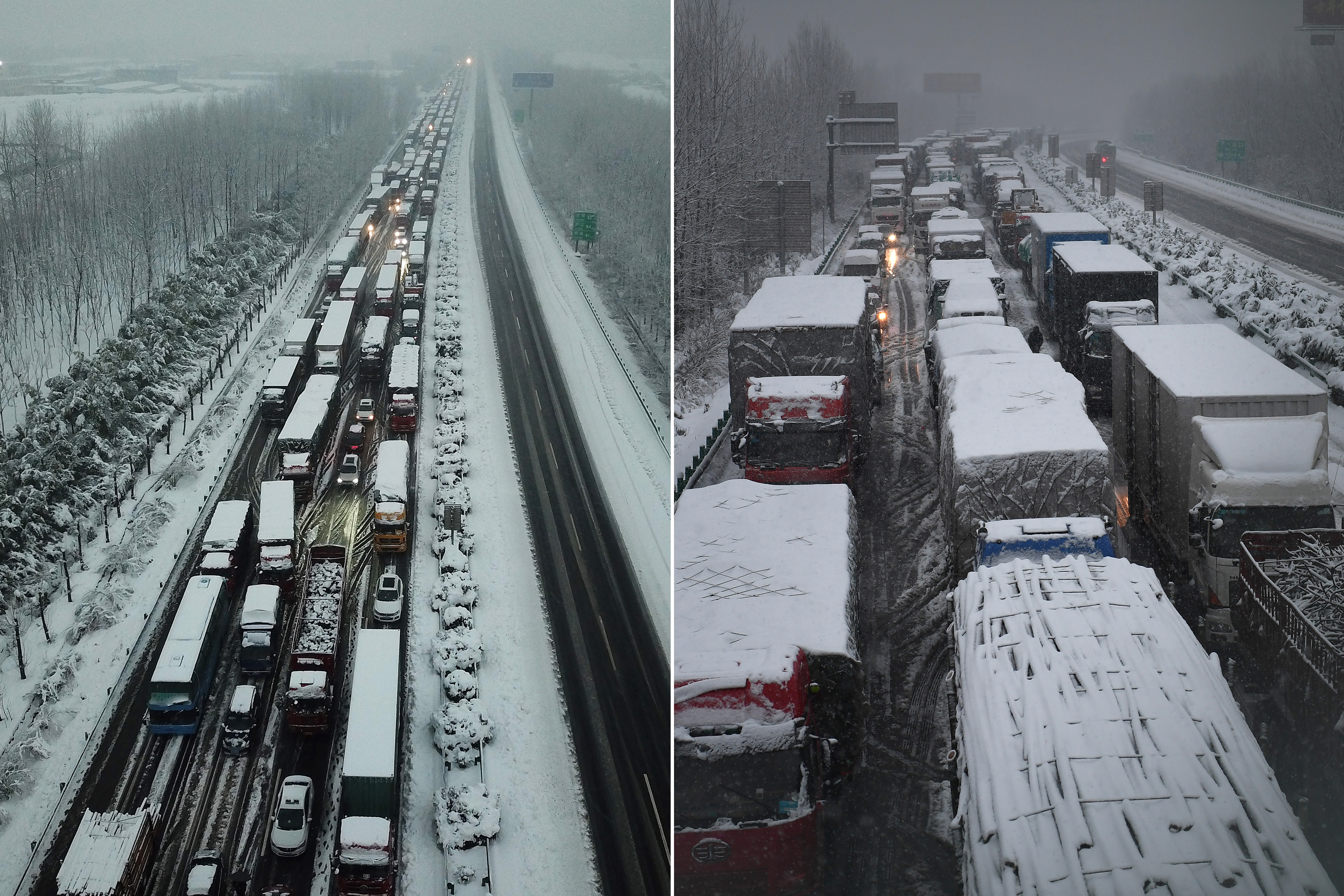 1月3号上午开始,安徽多地迎来新年首场降雪,当地气象台发布了暴雪橙色预警和道路结冰黄色预警。受暴雪影响,1月4日至5日,安徽省内10条高速部分路段的入口采取了临时封闭措施。由于道路结冰,部分高速和国道出现大面积车辆拥堵,时间长达十几小时。