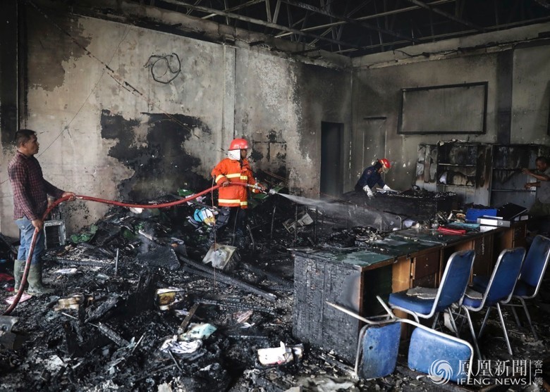 当地时间1月4日,印度尼西亚亚齐省一监狱爆发动乱,3名囚犯不满将被转移到离家较远的监狱,其他囚友加入示威,最终演变成暴力事件。有囚犯破坏并四处纵火,当局派出数百军警平息暴动。图:视觉中国