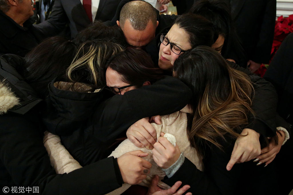 当地时间2018年1月2日,美国纽约布朗克斯,12月28日布朗克斯区公寓火灾遇难者家属悼念亲人。图片作者:AMR ALFIKY/视觉中国