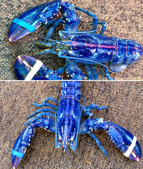2012年6月,一名加拿大渔民在大西洋海域捕获一只罕见蓝色龙虾,据称,蓝色龙虾出现的概率为200万分之一。据这位51岁的渔民称,“我已经从事龙虾捕捞已经33年了,正常的话每天能打捞3000只,捕获到蓝色龙虾这还是首次。”据悉,蓝色龙虾是基因突变的结果,出现概率为200万分之一。