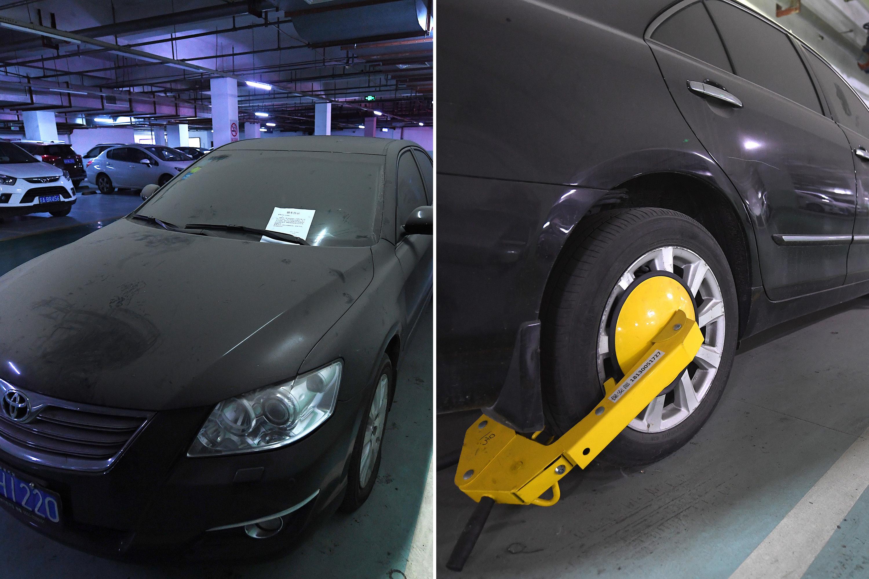 11月26日,合肥胜利路一酒店地下停车场,一辆丰田轿车已经被酒店锁了长达7个多月,车上落满灰尘,停车费已经超万元,无奈司机一直没有出现。