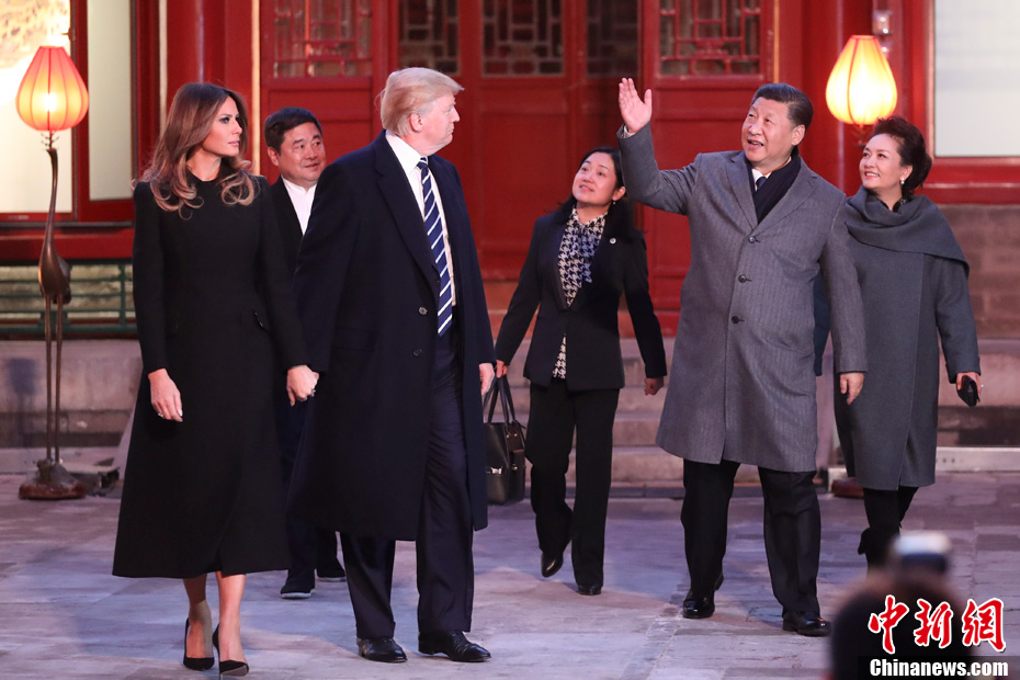 11月8日,习近平和夫人彭丽媛在故宫畅音阁与来华进行国事访问的美国总统特朗普和夫人梅拉尼娅共同欣赏京剧表演。两国元首夫妇观看了《梨园春苗》《美猴王》《贵妃醉酒》三个精彩剧目。来源:中国新闻网