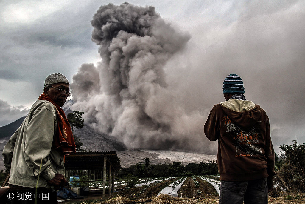 当地时间2017年10月24日,印尼北苏门答腊省,锡纳朋火山喷发,火山灰遮天蔽日。供图:Splash News/视觉中国