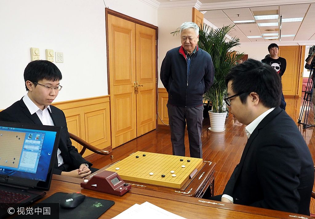 2017年10月22日,上海市,十四届倡棋杯中国围棋职业锦标赛决赛和第七届陈毅杯业余围棋公开赛决赛同时于今天上午9点半在上海在上海应昌期围棋教育基金会落子。图为陈丹淮看决赛。供图:视觉中国