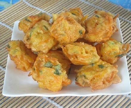主料:红萝卜、鸡蛋、淀粉、面粉、青葱、盐、胡椒粉。