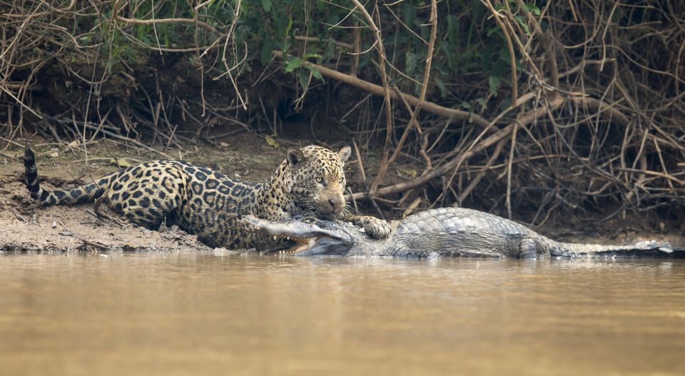 周二,野生动物摄影师克里斯·布伦斯基尔(Chris Brunskill)的镜头记录下了一场生死搏斗——美洲豹vs凯门鳄!