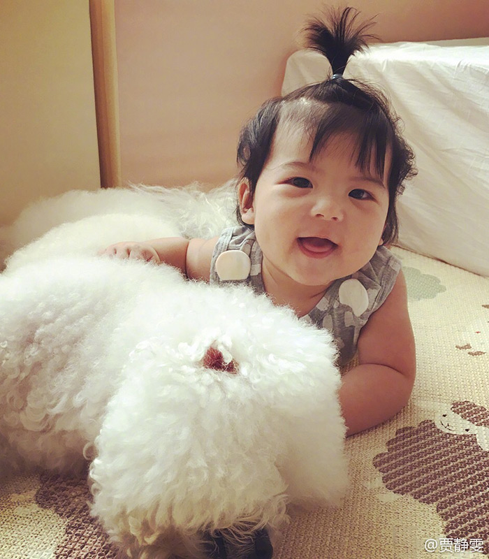 贾静雯晒Bo妞剪发对比照 圆圆大眼萌态十足