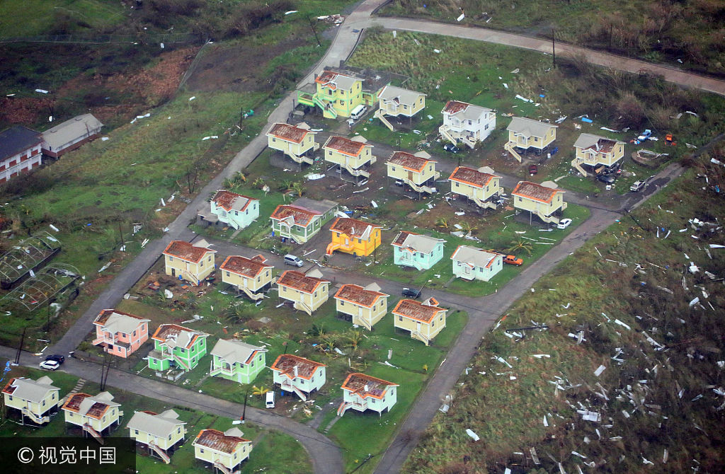 当地时间2017年9月19日,多米尼加,航拍多米尼加飓风灾区。18日晚,超强飓风“玛利亚”以四级风力登陆加勒比海地区岛国多米尼加,造成极大破坏。供图:HANDOUT/视觉中国