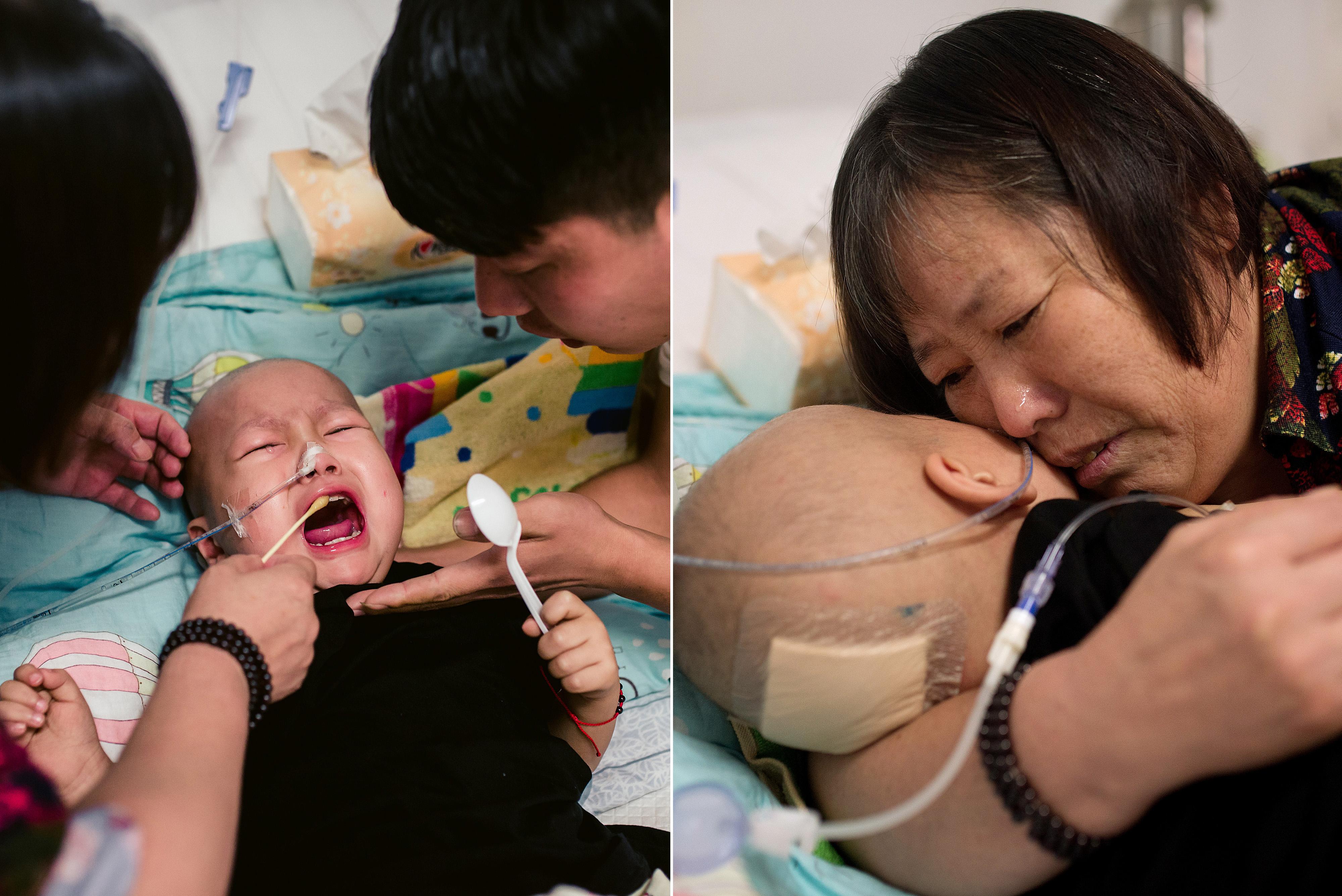 9月15日,北京八一儿童医院病床上,2岁的洋洋因为难受,不停地哭泣,奶奶和爸爸在一边哄着他。哭声中,洋洋还不时叫妈妈,奶奶忍不住搂着孩子流泪。她不知道如何告诉孩子,妈妈10多月前就不要他走了,此前还曾经拿走他的救命钱。