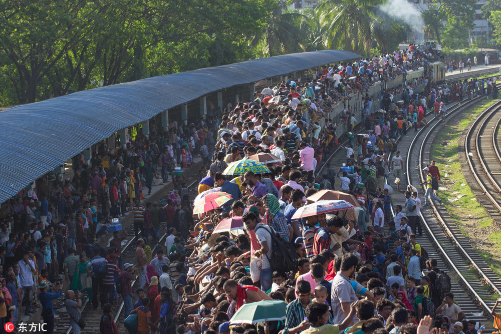当地时间2017年8月20日,孟加拉国达卡,达卡火车站出现出行高峰,人们排长队买票返乡,期待与家人共同庆祝穆斯林重大节日——宰牲节。供图:Azim Knan Ronnie/东方IC