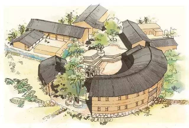 于是,她决定要给村民做一个活动中心。看图纸上的大弧形,是不是长得有点像客家围屋?