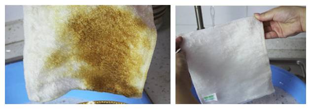 还有很多污渍残留在纤维内部。