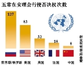 从联合国1945年成立至今,安理会的5个常任理事国都曾或多或少地使用自己掌握的否决权。