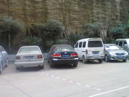 在南江县地税局停车场内,记者见到了这辆特殊号牌的黑色广本轿车,车身上蒙有一层厚厚的灰尘,看来有好几天没有动过了。