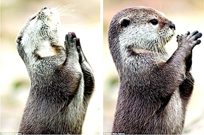 克洛德金斯基称,他在严寒中等待了2个小时,等待合适拍照的时机。突然,这只水獭双爪合十,仰起头闭上眼睛,好像在祈祷:“上帝,请赐给我一条鱼吧!”