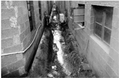 2月24日,长沙市武广新城黎街道,因缺乏专门的排水管,污水从房子间水沟直接排出。记者 龚磊 摄