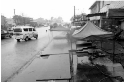 新开铺路钢材市场沿线:道路坑坑洼洼,大货车占道,四周黄土裸露,几乎没有绿化,一个垃圾围子就建在了路边,本应倒在围子里面的垃圾却有不少倒在外面,十分刺眼。这条马路也成了一个免费的停车场,数十台运送钢材的大货车随意停放在马路的两侧,几乎占去了整个道路的一半。这里不少店外经营的门店将大马路当成了露天钢材加工厂,作业的同时将店内垃圾带到了店外,随意乱扔。放眼望去,整条街犹如一个庞大的杂货铺。