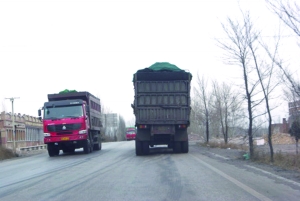 2月25日,记者在110国道土默特右旗段看到,这里110国道二级改一级已经完工,路标、道路两旁的设施已经安装完毕,宽敞明亮的公路让大小车顺畅地跑在公路上。堵车现象没有了,但是一些超载车却大白天明目张胆地通行在这条新修的公路上。记者看到,一些自卸车(俗称翻斗车)也加入了超载的行列,有些自卸车装煤已经超过了车厢。一位知情人士告诉记者,按规定一辆自卸车的标准载重应该是连车带货不超过40吨,但是那种已经超过车厢的拉煤自卸车如果拉的是九峰山煤矿出的煤,应该有70吨,如果是轻煤也有50吨以上,可以说这些自卸车比高速公路上跑的拉煤车装的煤还要多,超载的破坏力还要大。